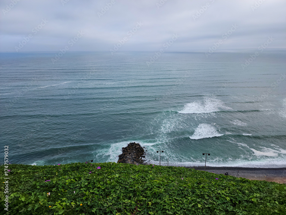 View of the marina bay next to cliffs with many gardens with multiple grasses and flowers