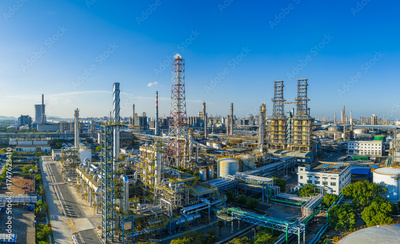 A large oil refinery and petrochemical plant with complex equipment in industrial area