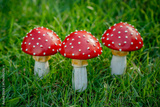 Garden decor fly agaric mushroom in the grass