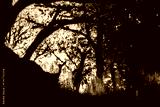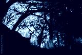 Cervus elaphus. Siluetas de una hembra y la cría de ciervo común o europeo en el bosque.