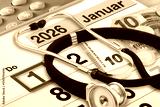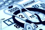 Deutscher Kalender Datum 1. Januar 2026 mit Euro, Rechner und Stethoskop