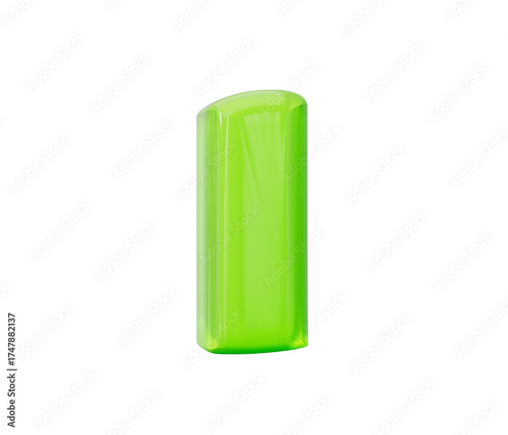 Vibrant green jelly letter I 3D rendered for playful typographic designs. 3d illustration