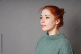 mid adult woman with red hair and freckles looking away