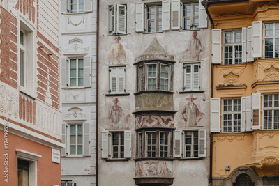 Bolzano, Italy - February 2025: Piazza del Municipio and typical architecture in the city center