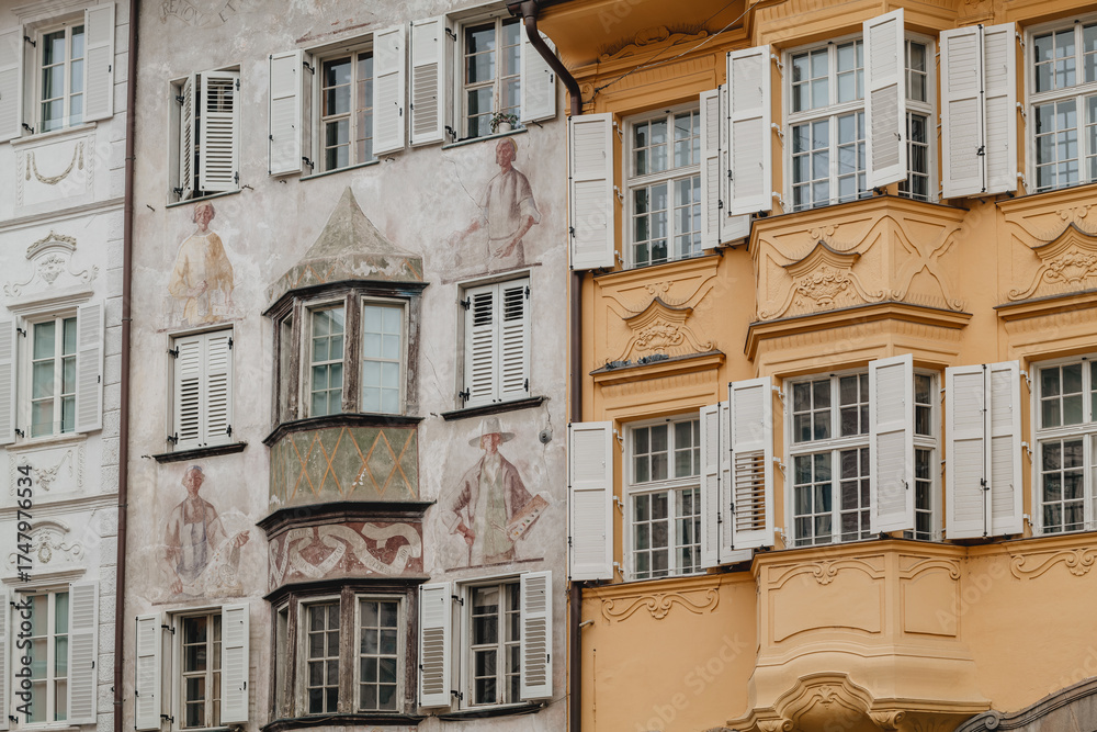 Bolzano, Italy - February 2025: Piazza del Municipio and typical architecture in the city center
