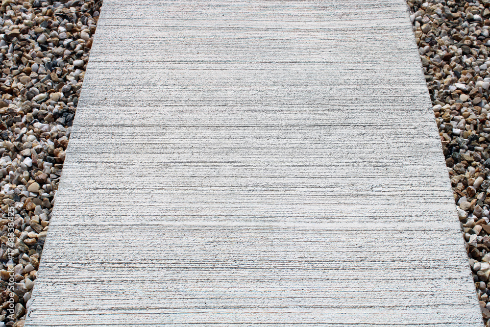 Allée en béton strié ou balayé brut dans la cour de la maison