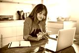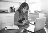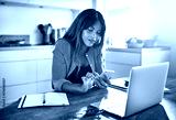Young entrepreneur using a cellphone while working in her kitche