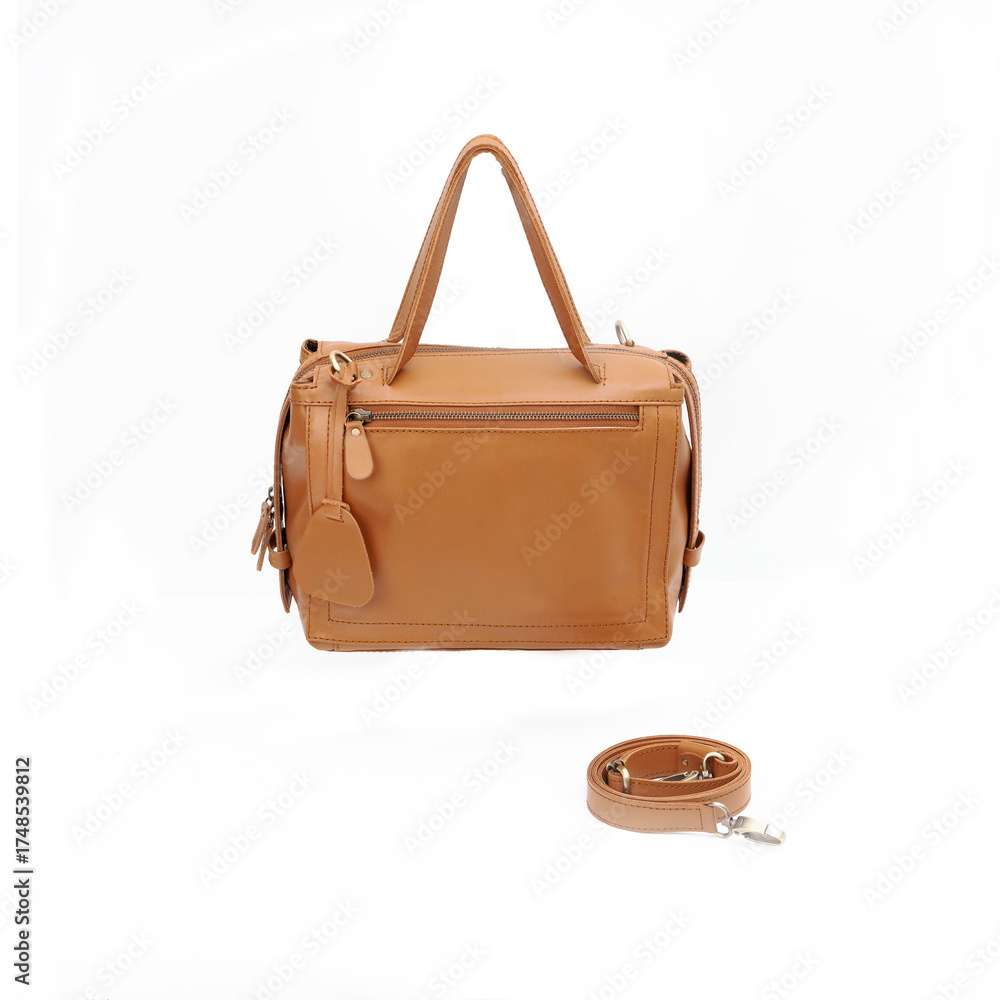 Beautiful leather bag for women in Tan color isolated on white background