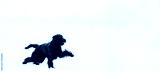 Funny Young Black Giant Schnauzer Or Riesenschnauzer Dog Fast Running Outdoor In Snow, Winter Season