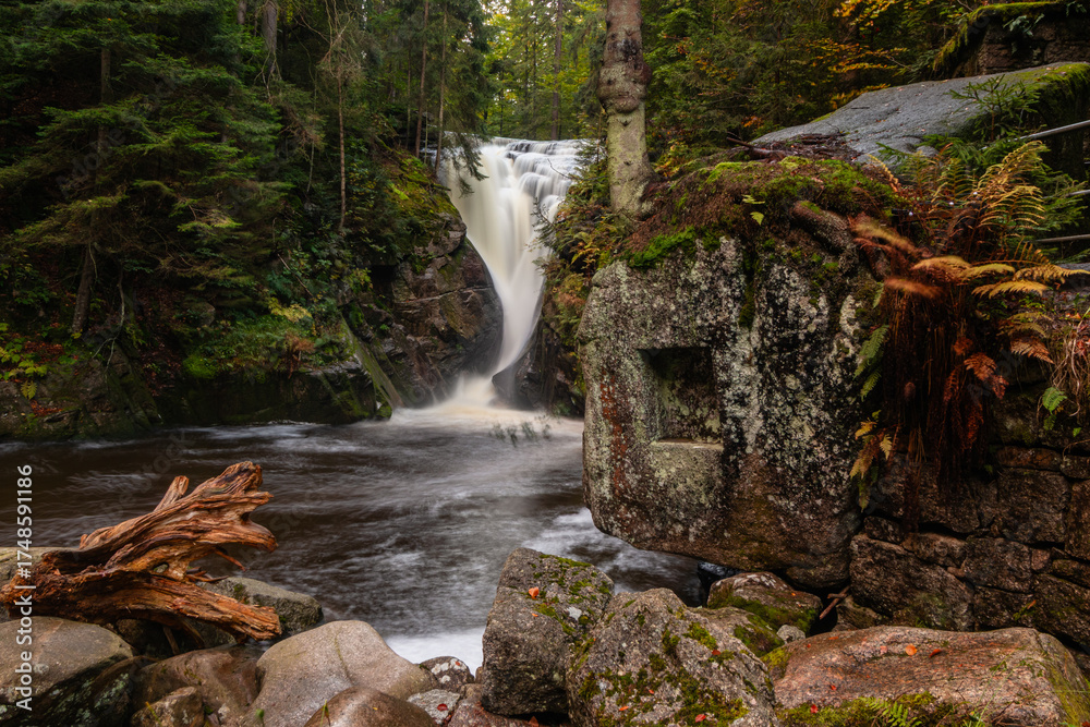 Wodospad Szklarki, jesień w Karkonoszach, Piechowice, Szklarska Poręba.