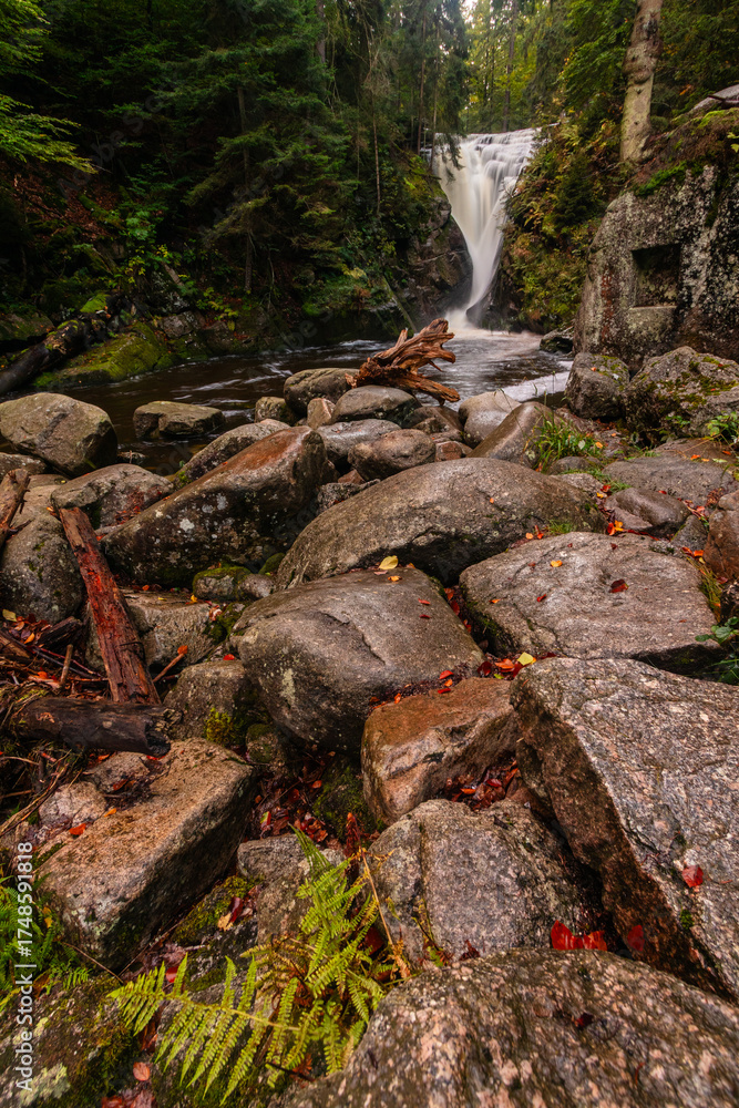 Wodospad Szklarki, jesień w Karkonoszach, Piechowice, Szklarska Poręba.