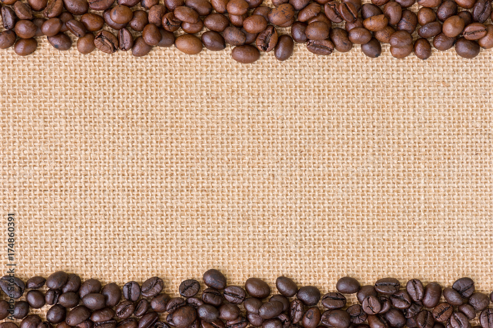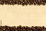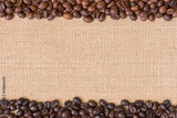 Coffee bean.Dark and medium roasted coffee bean on burlap background.