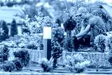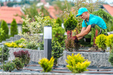 Gardener Tending to Plants on a Rooftop Garden in a Sunny Urban Setting