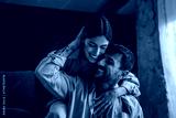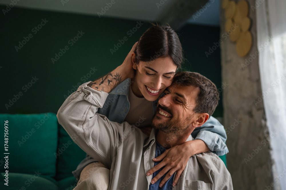 Happy couple hugging, embracing, sharing love at home