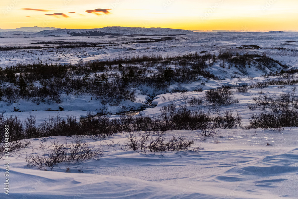 Impression of a beautiful winter scene near the icelandic town of Laugarvatn