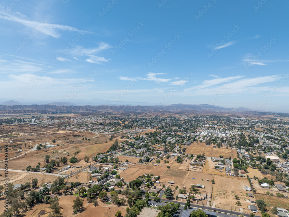 Aerial view of of house in Yucaipa city, in San Bernardino County, California, United States. High quality photo