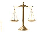 Golden scales of justice isolated on transparent background, symbol of law and fairness in court, legal balance concept