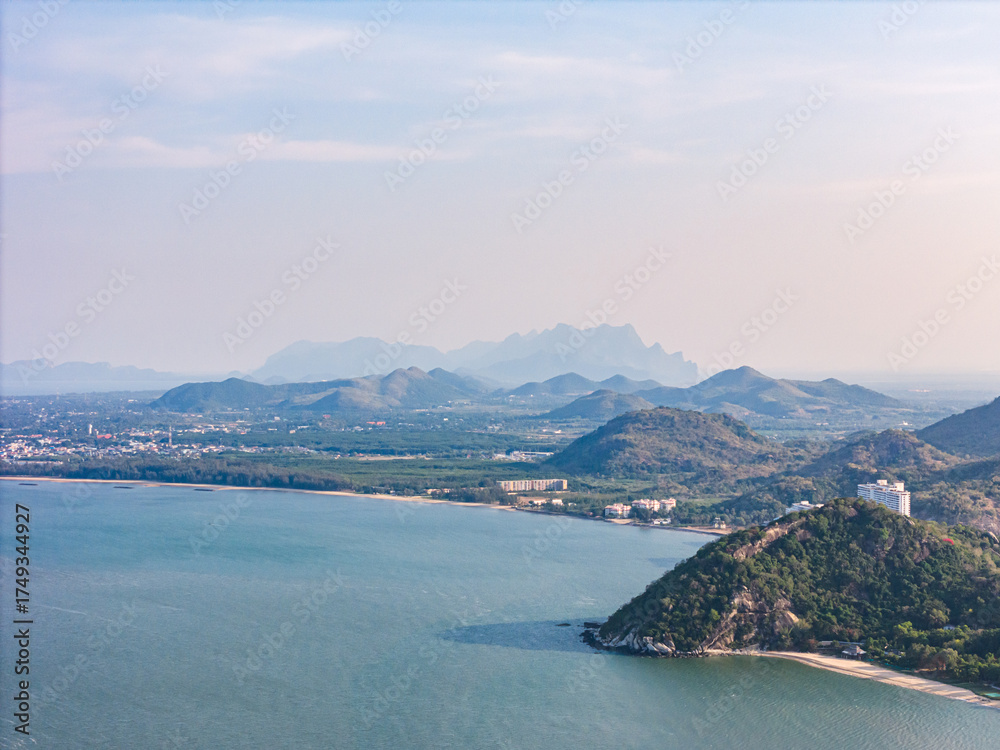 Scenic Panoramic Aerial View of Coastal Mountains in Prachuap Khiri Khan Province, Thailand