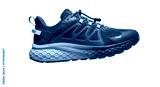 Isolated blue running shoe angled to the right for sport, training, active, or fitness use