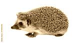 Isolated spiny European hedgehog facing left; a small mammal in horizontal composition