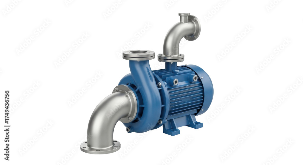 Isolated industrial centrifugal pump with silver piping, equipment in engineering sector