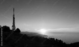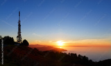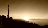 Communications tower. Antennas at sunset on Mount Jaizkibel, Basque Country