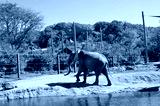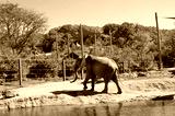 African Elephant Walking by Water in Sunlit Zoo Habitat