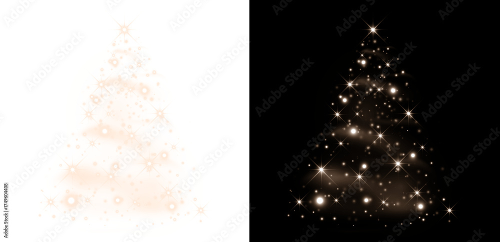 Glowing Christmas Tree Isolated. Glowing stars in the shape of a Christmas tree