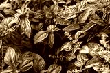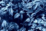 Green basil plant growing in home garden. Fresh leaves of Genovese herb. Tulsi.