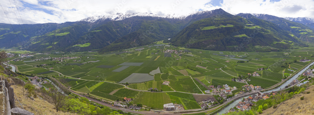 Südtirol- Panorama, Apfelplantagen im Vinschgau