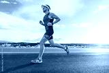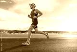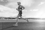 Triathlon - Triathlete man running in triathlon suit training for ironman race. Male runner exercising on Big Island Hawaii. Sunset.