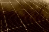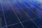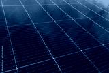 Detailed view of blue photovoltaic solar panel cells capturing sunlight for renewable electricity generation