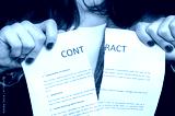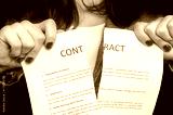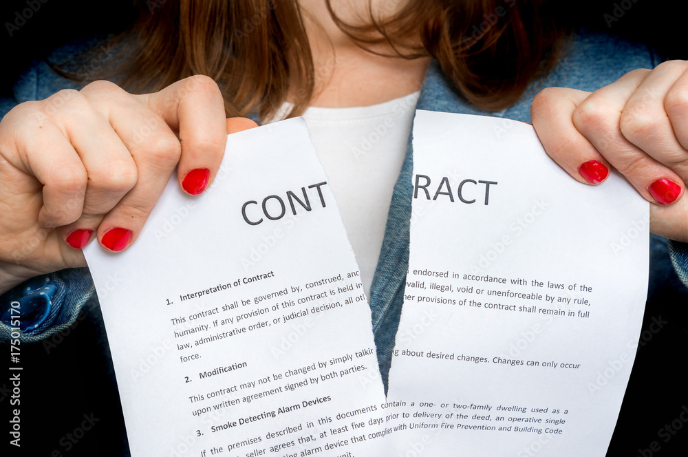 Business woman tearing contract - isolated on black