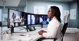 Female Radiologist Diagnosing Cancer Via Online Webinar