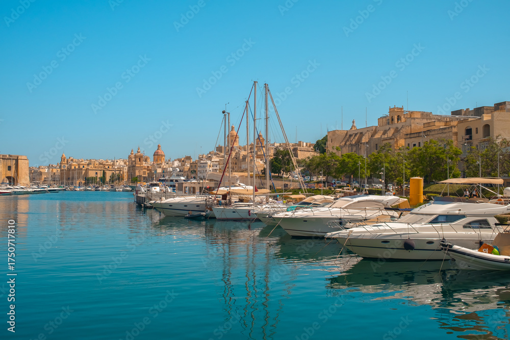 Birgu Waterfront, Malta – Boats, Historic Cathedrals and Old Town View