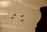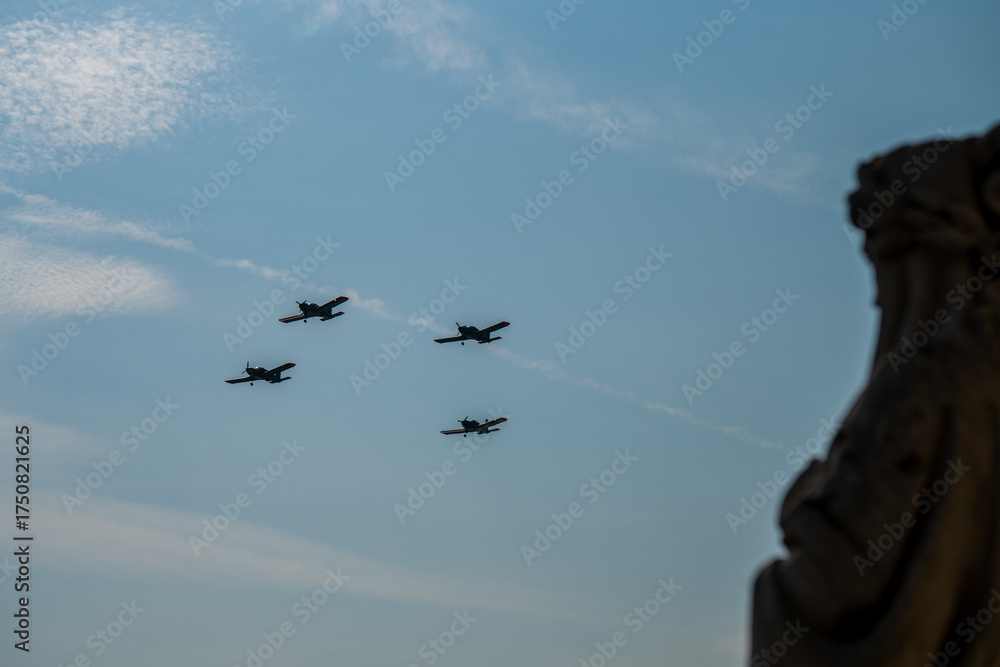 Budapest, Hungary - August 20, 2024: Four Zlin-142 aircraft performing aerobatics over Budapest