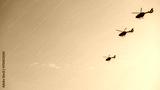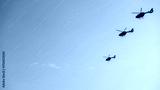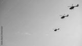 Budapest, Hungary - August 20, 2024: Three military helicopters performing at Budapest air show