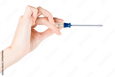 Hand holding screwdriver. Isolated on white with clipping path