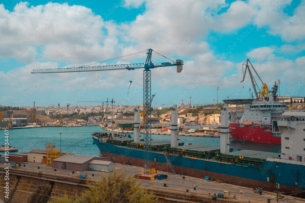Malta Industrial Port with Cargo Cranes and Dockyard View