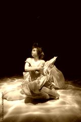 Behold an Enchanting Underwater Dance Performance taking place in a Beautifully Flowing Yellow Gown