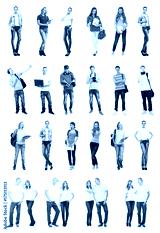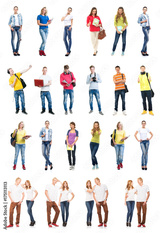 Group of happy students. Collection set isolated on a white backgound.