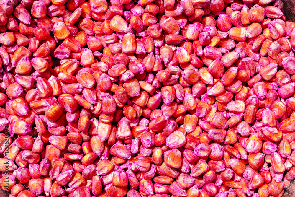 Beautiful background of popcorn for various uses. Popcorn kernels close-up. Food texture, pattern.