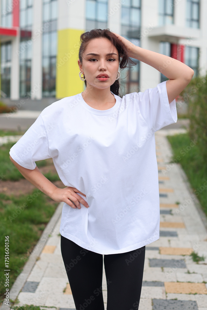 A Stylish and Fashionable Young Woman Dressed in a Casual Outfit, Enjoying the Outdoors