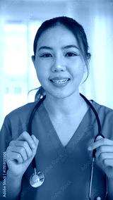 POV Young adult woman asia people anti aging expert modern nurse live talk video call selfie look at camera mobile phone app mental health care Online side hustle digital virtual asian vlogger filming