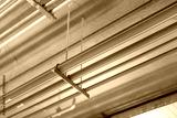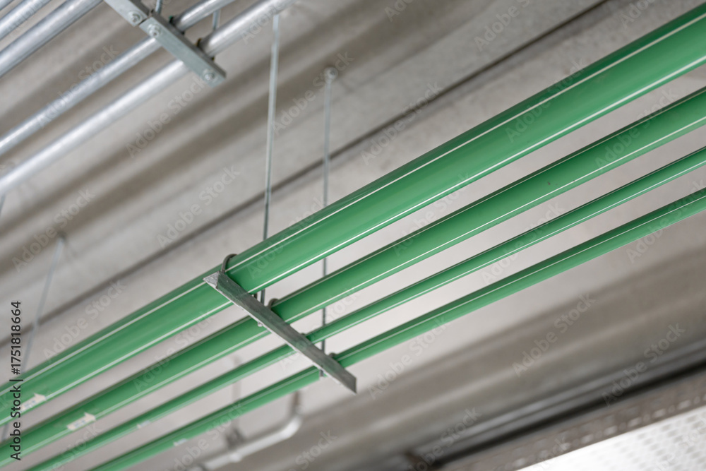 Iron pipeline of plumbing water that installed on building's ceiling.