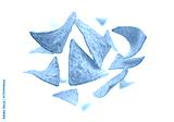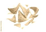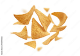 Corn chips of triangular shape levitate on a white background