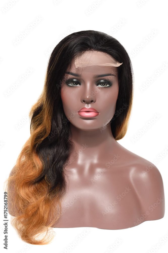 body wavy black to brown ombre style human hair weaves extensions lace wigs on fake model
