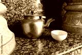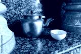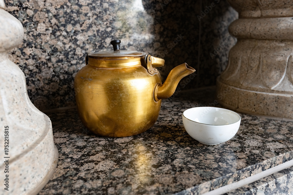 Tea pot and tea cup close up, traditional tea attributes in Tajikistan