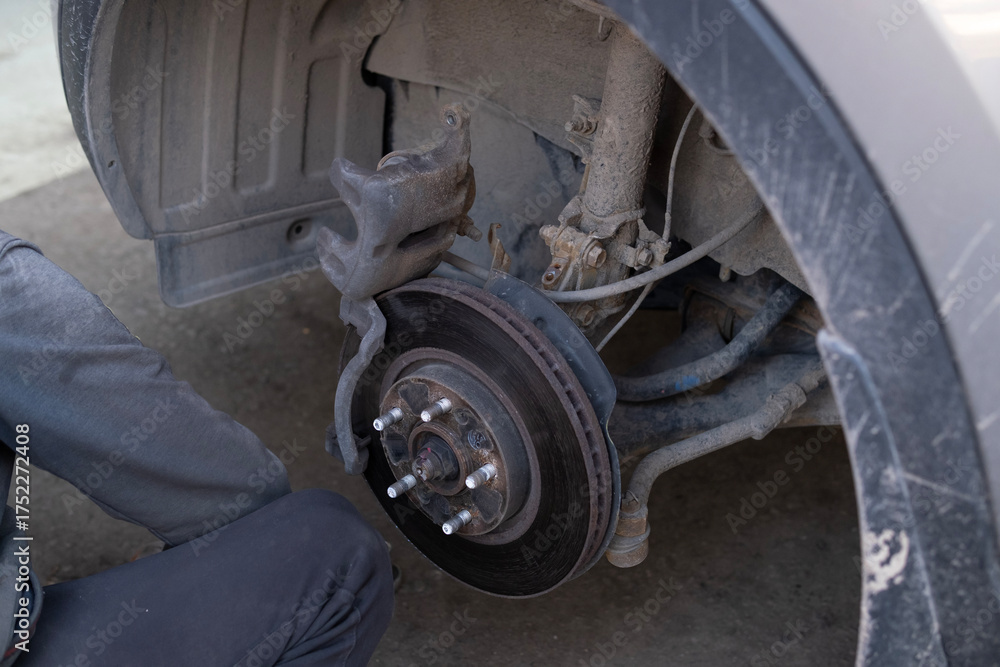 The process of replacing car brake pads. The master replaces car brake system parts.
