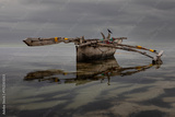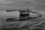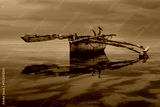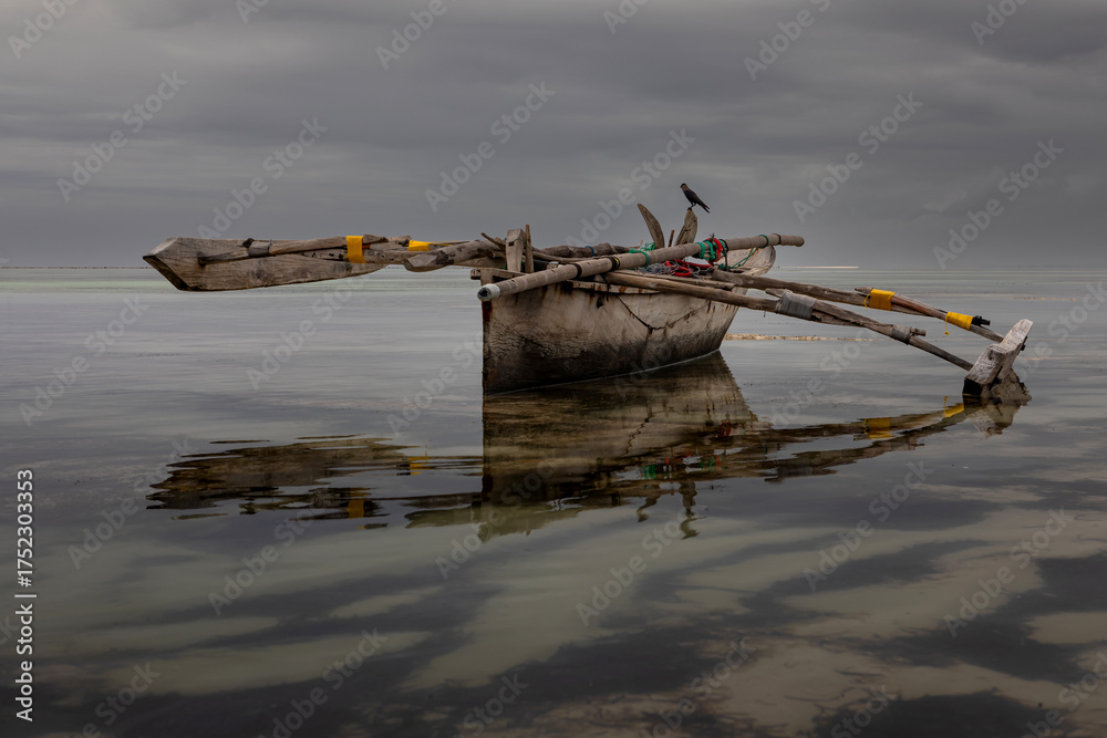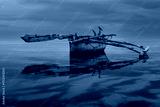 An abandoned ship stands aground. A heavenly landscape. A wooden ship. Beautiful nature. Blue sky.